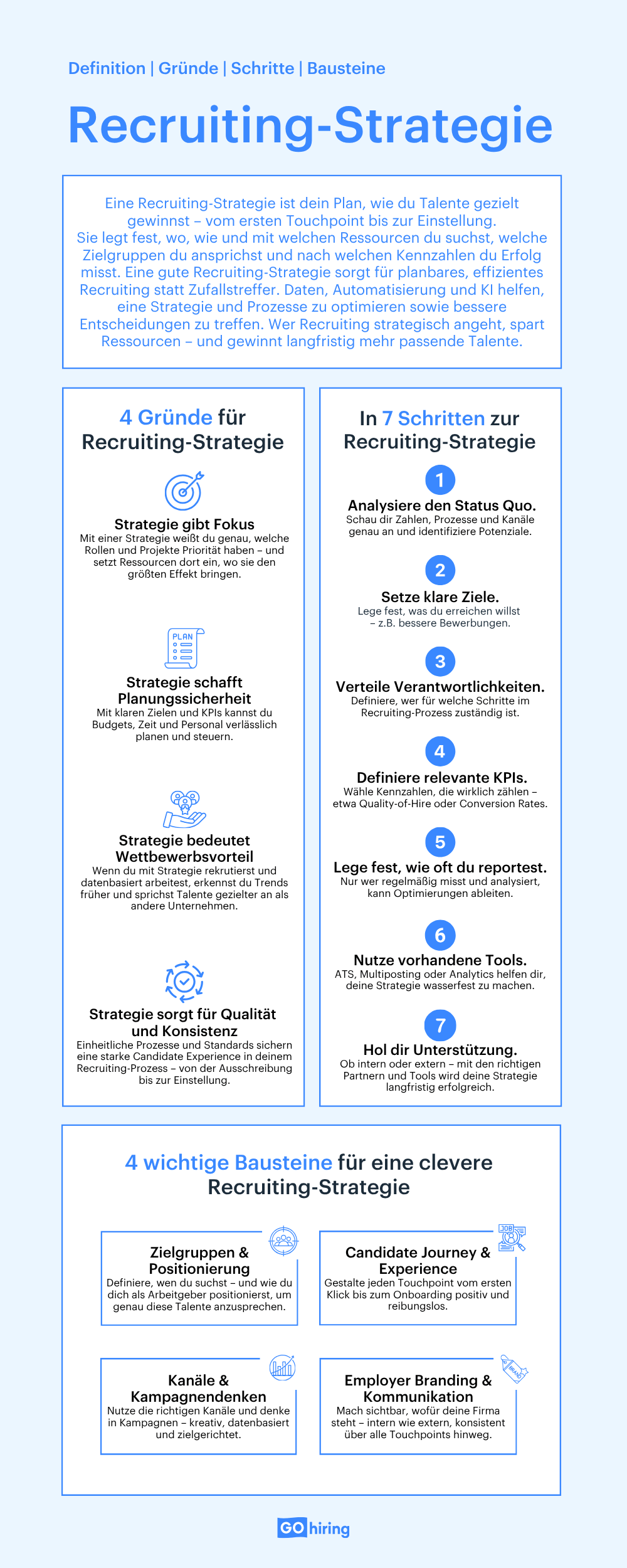 Eine Strategie hilft dir, langfristig zu denken: Du kannst Personalbedarf frühzeitig erkennen, Kampagnen gezielt vorbereiten und Budgets realistisch planen.