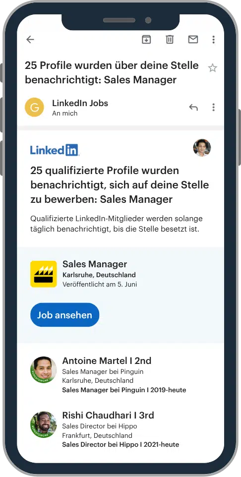 Du erreichst Kandidat:innen, die deine Anzeige sonst nie gesehen hätten – dank Direktansprache durch LinkedIn. Ideal, um auch passive Talente zu gewinnen.